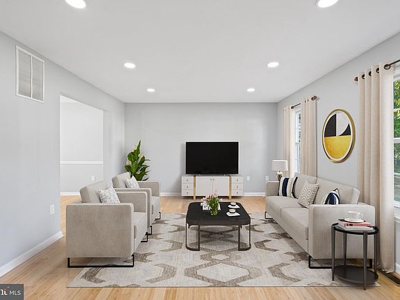 This charming single-family home in bustling Suitland offers 1,560 square feet of living space, 3 bedrooms, 3 full baths, 1 half bath, and a 1-car garage. The updated main level features a traditional layout with recessed lighting and a neutral color palette. Upon entering, you'll find a convenient powder room in the foyer hallway, followed by a spacious living room that flows into the formal dining room, accented by an elegant chair railing. The renovated eat-in kitchen boasts new countertops, white cabinetry—including some glass-front cabinets for added character—and stainless steel appliances, complemented by a white subway tile backsplash. The cozy breakfast nook with deck access is perfect for casual meals. The upper-level houses 2 full bathrooms and 2 carpeted bedrooms, including the owner's suite with a walk-in closet, built-in vanity, and an ensuite bath. A laundry closet with hookup capabilities adds convenience on this level. The expansive lower level is designed for entertaining, featuring a beautifully tiled full bathroom, a third bedroom or versatile bonus room, extra storage, and walk-out access to the backyard. Outside, enjoy a two-tiered deck, a covered patio below, and a large, semi-tree-lined fenced backyard for added privacy.