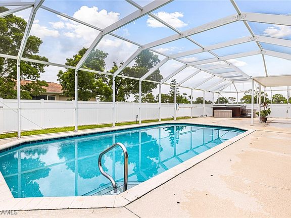 Charming 3-Bedroom + Den, 2 full bath, 3-stall garage, and oasis with Heated Pool in quiet area of Cape Coral! Welcome to your dream retreat! This single-family home boasts three spacious bedrooms plus a versatile den/office perfect for a home office or guest room. Step outside onto the expansive pool deck, where you’ll find a sparkling heated pool and hot tub, ideal for year-round enjoyment. The fenced backyard offers privacy and a convenient shed for storage. And that’s not all: the freshly painted interior and exterior give this home a modern touch, while the brand-new roof (installed in 2024), updated A/C (replaced in 2023), and recently installed pool heater (2022) ensure comfortable swimming all year long. The 3-stall garage is large enough for all your storage needs.