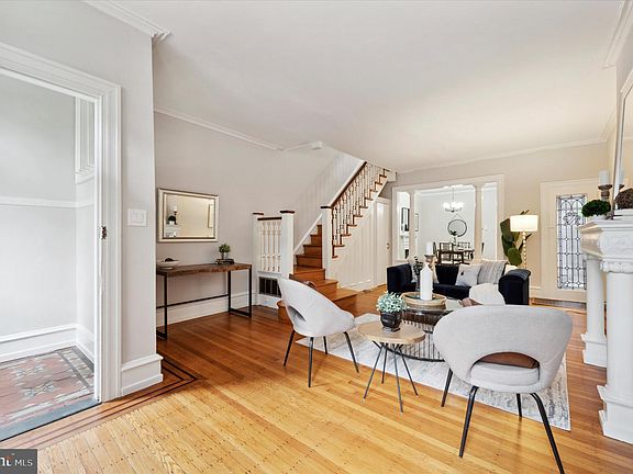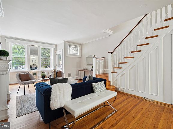 Welcome to 4312 Pine Street, a charming and meticulously maintained residence nestled in the heart of University City and in the Alexander Penn school catchment. This character-filled townhome seamlessly blends classic architecture with modern updates, offering a perfect balance of character and comfort. Situated in the desirable neighborhood of Spruce Hill, this property provides an excellent opportunity to experience city living at its finest. As you enter through the tiled vestibule you'll notice the excellent ceiling height and character throughout. The living room features hardwood floors, a decorative mantel, crown molding and built-in shelving under the front windows. The dining room with inlayed hardwood floors and windows leads into a hallway with the half bathroom and laundry area. The eat-in kitchen is in the rear of the home and includes gas cooking, high ceilings, and access to the wonderful over-sized backyard with gardens, patio, mature landscaping and a water feature! The second floor of the home consists of a large rear room with built-ins that could be used as a family room, bedroom, or library/office, a hall bathroom with beaded board walls, middle bedroom with exposed brick walls, and a front bedroom also with exposed brick walls and wonderful natural light. The upper floor features roof access (deck potential), a recently added full bathroom with stall shower, and a large bedroom with recessed lighting and ample closet space. Also on this level is the potential for a laundry hook-up. The basement is unfinished with plenty of storage and gas-fired heat and hot water heater (2016). Walk to UPenn, Clark Park, CHOP, local shops, restaurants, public transportation from this one-of-a-kind must-see home!