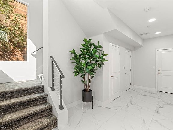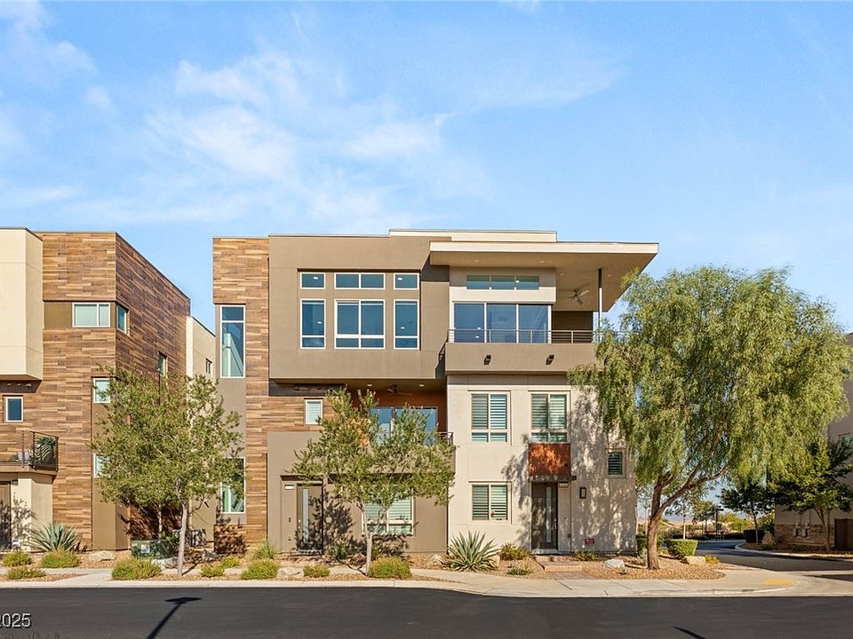 At 4312 Veraz Street in Trilogy, Summerlin’s premier 55+ community, modern design meets breathtaking natural beauty. This top-floor-end unit Apex plan condominium with a private elevator offers 2,436 sq. ft. of refined living with 2 bedrooms, 2 ½ baths, and an Office. The heart of this home is a chef’s dream kitchen, featuring a dual height expansive Island, high-end appliances including a multi-function gas range, built-in refrigerator and freezer, dual-zone wine refrigerator, custom cabinetry with pullouts and full slab backsplashes. From floor to ceiling this home was extensively remodeled in 2023 adding well beyond builder upgrades such as a floor to ceiling Great Room built in Fireplace/Media Wall, custom storage and luxurious finish materials throughout. Expansive corner glass sliding doors provide indoor/outdoor living amidst the stunning mountain vistas and select city views which define Summerlin living. Seamless melding of modern design, functionality, views, and community.