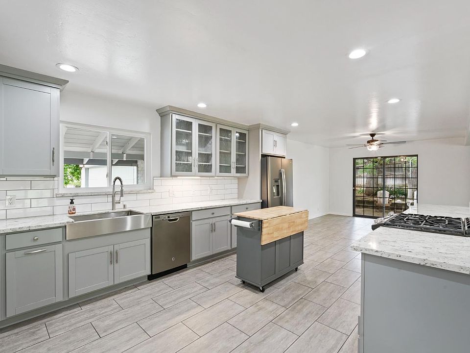 Discover this beautifully updated 3-bedroom, 2.5-bath home nestled on over a quarter-acre lot in the heart of Carmichael. Enjoy one of the largest front yards in the neighborhood, surrounded by mature trees that offer shade and charm. Step inside to a bright, open-concept living space filled with natural light and warmth. The chef's kitchen is a true highlight, featuring soft-close cabinets and drawers, a granite island, stainless steel appliances, a farmhouse sink, and a gas range perfect for entertaining and everyday living. The spacious primary suite includes a thoughtfully remodeled bathroom with double sinks, an oversized shower, and a smart mirror/medicine cabinet. Off the dining area, you'll find a versatile office or craft nook and a laundry room with abundant storage. The expansive backyard is made for relaxing and hosting with a covered patio, built-in skylights, hot tub, and two sheds for extra storage. Located on a tranquil, tree-lined street known as one of Carmichael's most desirable neighborhoods come visit, take a walk, and fall in love with your future home.