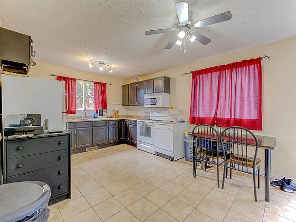 This home needs some TLC, but has a double car detached garage, and a massive fenced back yard, [with the lot being a huge 1302sq meters (14,014 sq ft.!)]. The garage is also oversized, at about 700 sq ft. [The typical double car garage is maybe 20' x 22', or a little over 400sq ft.]. There is also a large deck off the back of the house, with plenty of room for entertaining friends or family while having a BBQ. The main bath upstairs is also oversized, at 13' long by 5' wide! There are 3 bedrooms upstairs, and another bedroom and 3/4 bath downstairs. The home has a living room off the front entry, with an electric fireplace, and a wood stove downstairs in the family room. There is plenty of space for a growing family and with the fenced back yard, lots of room for pets or children to play. The home is also in a partial crescent, with very low traffic flow.