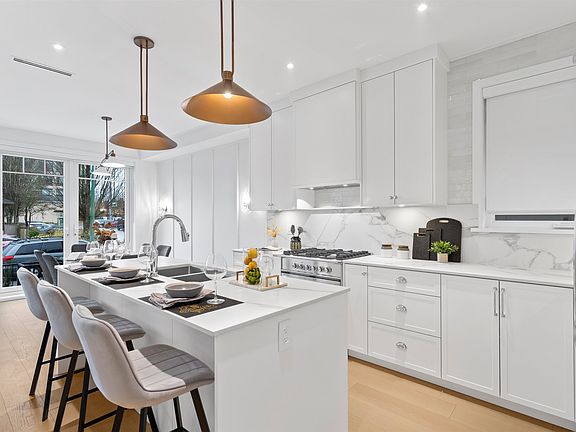 Welcome to this farmhouse-style half duplex located in the heart of Vancouver Heights, built by Case Moderna. Offering under 1,900 sq ft of beautifully finished living space. The open-concept main floor showcases wide plank hardwood flooring thru out the main & upper floor, stone kitchen countertops, wainscoting walls and premium built-in Fisher & Paykel appliances, plus gas washer, dryer, stove and fireplace. French doors off the main-floor open to the outdoors, built-in speakers, security cameras, HRV, gas furnace and a heat pump with A/C ensure comfort and peace of mind. Upstairs includes a spacious floor plan with a larger primary bedroom, extra closet space leading to a lux ensuite with a second bedroom and bathroom, Vaulted ceilings and a bright spacious one-bedroom suite.