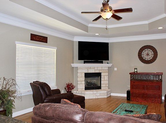 Enjoy The Trails quiet living in this beautiful 3 bedroom 2 bath home. Inside you will find crown molding, granite counter tops, pantry, laundry room, Austin stone fireplace, security system, tall ceilings, split bedroom arrangement, large master bedroom and bathroom that has dual sinks, 2 walk-in closets & jetted soaking tub. Home also has a 2 car garage, xeriscaped yard, privacy fenced yard, raised bed garden, rainwater collection system & large covered patio.