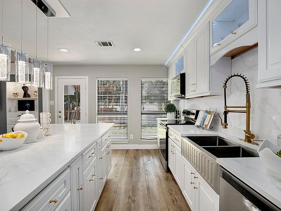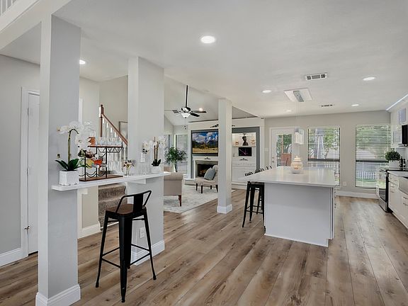 A masterpiece home recently luxury remodeled with an open floor plan. Brand-new kitchen (2021), flooring & bathrooms with abundance light. Huge gorgeous brand-new open kitchen concept with plenty of cabinets, pull-out shelves, farmhouse sink, industrial faucets, quartz countertops, cabinet lighting & huge island with overhangs at 3 sides as a table or gathering area. New range & dishwasher 2019 & microwave 2021. Master bedroom on 1st floor. Master bathroom has dual vessel sinks, brand-new walk-in shower & rain shower head. Additional to 2 bedrooms & full bath on 2nd level, bonus room with full closet can be either a 4th bedroom, office, game room, second living room or media room. New ceiling fans, LED lights, chandeliers & smart switches in 2021-2022. Pergola in backyard with a bar for outdoor entertainment. New lawn & landscaping 2022. Interior painted 2019, exterior 2022. New A/C 2021. Easy access to highways, very close to elementary school & many shopping locations!
