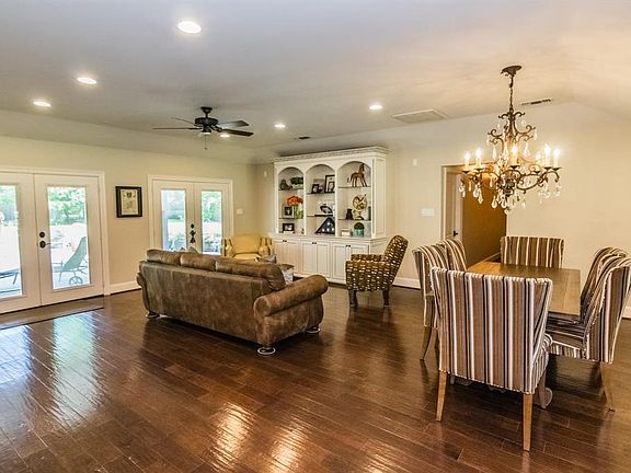 Gorgeous Ranch style home completely renovated w/custom touches located on a ¾ acre lot! Beautiful entry door w/wrought iron design leads to the study w/French doors, wood flooring & custom built-ins. Formal dining & living areas feature wood flooring, recessed lighting, built-ins & 2 sets of double French doors leading to the covered back patio. Chef's dream kitchen features granite, breakfast bar, Custom gas range/oven with griddle, wine fridge, stainless steel appliances, under cabinet lighting & wood flooring. Large walk-in pantry w/plenty of storage off the kitchen leads to the laundry area. Spacious den off the kitchen w/recessed lighting, wood flooring & wired for surround sound. Lovely master suite has wood flooring, double French doors leading to the back covered patio, walk-in closet w/blt-ins, granite counters & oversized walk-in shower. Huge backyard features a covered patio, fire pit, several mature trees & breezeway to the oversized 2-car garage w/room for workshop.