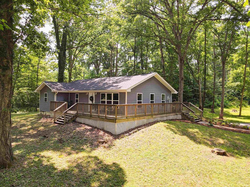Welcome to this lovely, move-in ready ranch over full finished basement! On the main floor, you'll find an open floor plan living area with a huge kitchen, dining area, and spacious living room, made to feel even more spacious by the soaring vaulted ceiling. Down the hall, you'll find the owner suite with walk-in shower and dual vanity as well as two extra bedrooms and a large hall bath with a tub/shower combo and lots of storage. The main floor boasts fresh paint and hardwood flooring throughout! Downstairs you'll find a fully finished walkout basement separated into a family room and a den/bedroom/flex space with tons of extra storage space and another FULL BATH. The basement flex space would be great for a private guest suite/In-Law quarters while maintaining enough space for the family's second living space. (There's so much room for activities!) This home sits on just under 3.5 PRIVATE, wooded acres, but offers easy access to civilization both in Ellettsville and the west side of Bloomington for that country feel with city convenience. The landscaping and wraparound deck take full advantage of the surrounding natural beauty and provide lots of opportunity for outdoor enjoyment. The spacious driveway allows plenty of space for a turnaround as well as large vehicle parking and/or provides the perfect place to build your dream pole barn or garage. If you're looking for privacy and convenience, this is the one!