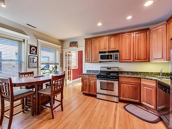 This is the one you've been looking for! This bright open concept 2 bedroom 1 bath top floor Ravenswood/ North Center condo will check a lot of boxes. Kitchen features cherry cabinets, granite counters, stainless steel appliances opens to ample table space that overlooks the front room with crown molding. French doors grace the 2nd bedroom which leads to a small deck area allowing for a great office space. Hardwood floors are throughout. This unit features in-unit laundry, 4 exposures to let all the light in, and shows well. EZ street parking and close to all the amenities this wonderful neighborhood offers. Brown Line is a short walk away. Why pay rent when homeownership awaits you?