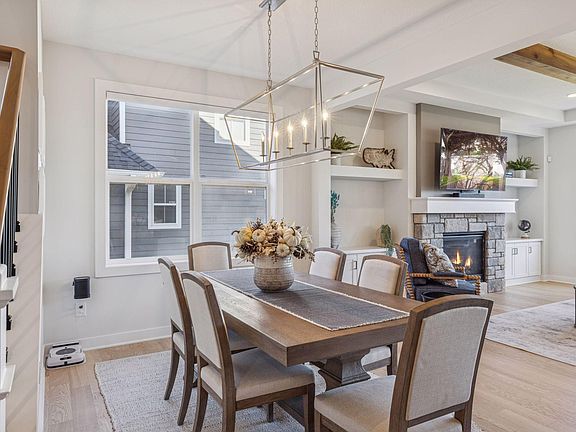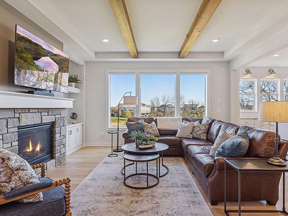 Stunning custom Hanson-built home offering peace and serenity, perfectly positioned on a private lot backing to open space and nature. The open-concept design welcomes you with wide-plank wood floors, upgraded enamel trim, and a stylish pocket office with built-in cabinetry. The great room impresses with a box-beam ceiling, stone-surround fireplace, and custom built-ins. The gourmet kitchen features new refrigerator and double ovens (2025), tile backsplash, custom hood, large walk-in pantry with built-in shelving, and abundant windows that fill the space with natural light.