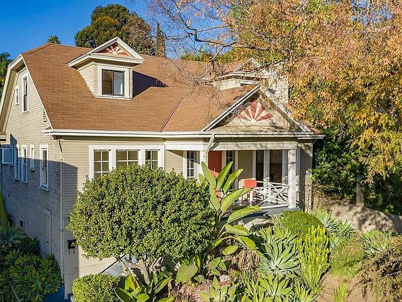 Presenting a beautifully designed 1920 Colonial Revival Bungalow, located in one of the most desirable areas of Los Feliz. The home sits up off the street & has a nostalgic front porch with views, breezes, and is filled with light & original character. This large but cozy home features beautiful wood flrs, a large living rm w/decorative fireplace, & beautiful vintage plaster crown molding. The formal dining rm is adjacent to a sizeable kitchen that leads out to the lovely private yard. Enjoy morning coffee or dine al fresco while enjoying a peaceful afternoon, or entertaining while barbecuing. There are a total of 5 bedrooms, 2 bathrooms + 2 offices (3+1bath + office downstairs, and upstairs has 2+1bath + office), detached carport w/long driveway. This home just blocks from all the action of Hillhursts shops, restaurants & is near the trails in Griffith Park! Franklin Elementary is the assigned School! Enjoy the perks of urban living while still being able to easily escape into nature