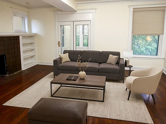 Newly Renovated 3-Bedroom Home with Bonus Sunroom! This spacious 2,000 sq. ft. home features 3 bedrooms, 2 bathrooms, a bright sunroom, separate living and dining spaces, and a cozy fireplace. The unit includes a spacious eat-in kitchen with an island. Enjoy all-new appliances, quartz countertops, hardwood floors, central air, secure intercom, and in-unit laundry. Bright, modern, and move-in ready!