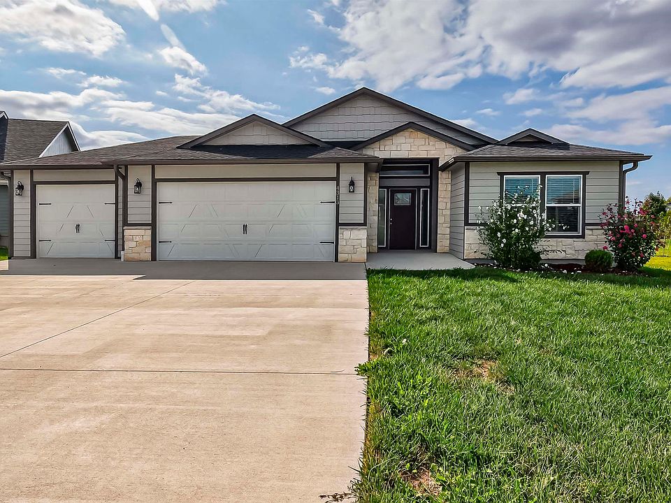Located in the highly desirable Rockfire Neighborhood, this main-floor living home on a quiet cut-de-sac is convenient to all the Lake Shawnee amenities and trails and also the Rockfire Clubhouse with its party space, pool, and gym! Open living concept for the kitchen with pantry, the many windows in the dining room and the huge living room. Grand ensuite primary has double sinks and large shower with great walk-in closet. The other two bedrooms are on the opposite side of the home and flank another full bath. Just enough yard, but not so much to keep you away from enjoying the area. Rock Fire has all the amenities one can love, community party house, gym, pool, and Lake Shawnee within walking distance! Get going, these go quick, so you’ll have to get some boxes!