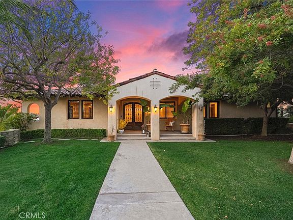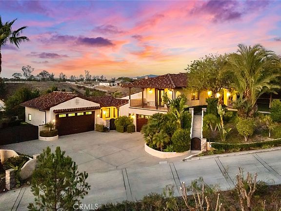 Welcome to this breathtaking custom home in Santiago Estates, perfectly situated at the end of a peaceful cul-de-sac, offering unmatched sunrise and sunset views. This 4,003 sq. ft. masterpiece sits on a full acre and is designed for both luxury and comfort. Step inside to discover 4 bedrooms, 3.5 baths, and an oversized office, which can serve as a 5th bedroom or private workspace with its own charming courtyard. Designed for versatile living, this two-story home lives like a single story, with a bedroom and en-suite bath on both levels. The upstairs suite, which can function as a private second master bedroom, boasts a private balcony with the most impressive sunset views. The heart of the home is the gourmet kitchen, equipped with slab granite countertops, an expansive island, and top-of-the-line Thermador appliances, including a vent hood, refrigerator, microwave, range, and dual dishwashers—perfect for entertaining. Outside, your private resort-style backyard awaits! Enjoy the custom saltwater pool and spa, an oversized wooden pitched patio area, and a built-in covered BBQ station—complete with its own half bath for convenience. This home offers one of the best views of Temecula’s annual fireworks show, making every celebration unforgettable. Additional highlights include: No HOA & low taxes, Pristine landscaping, Two separate 2-car garages with epoxy flooring (one oversized, ideal for work trucks or a workshop), High-pitched ceilings with wood beams, Custom shutters throughout, Expansive master suite with a private sitting area and patio access. This is a rare opportunity to own a truly exceptional home in one of Temecula’s most sought-after communities. Don’t miss out—schedule your private showing today!