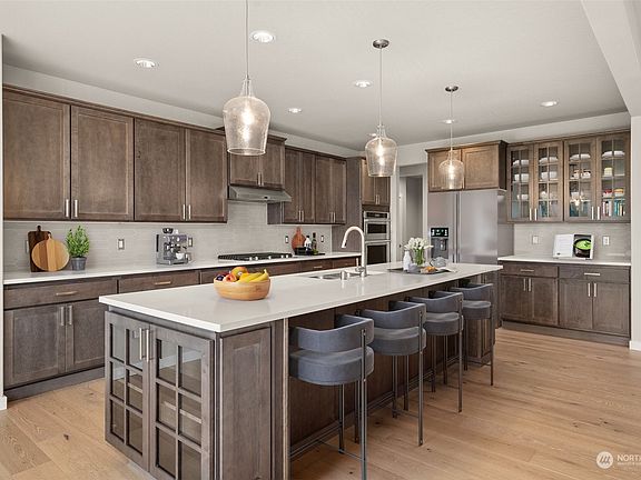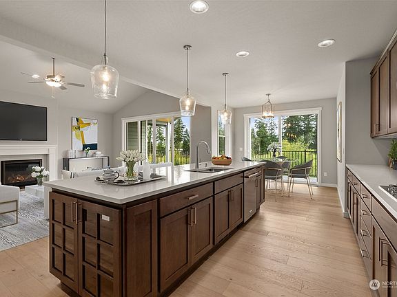 Last Rob Rice Home available in Campus Estates! This spacious home on the golf course boasts 4 bedrooms + den, 3.5 baths, a thoughtfully designed layout for main floor living. Escape to the upper level retreat, with a loft, full bath, and add'l bdrm. The gourmet kitchen is a dream, featuring exquisite Maple "Charcoal" shaker style cabinetry, quartz counters, full tile splash, and top-of-the-line Kitchen Aid appliances. The great room impresses with engineered hardwood flooring, vaulted ceilings, a cozy gas fireplace, and double slider leading to a gorgeous covered outdoor area to enjoy sweeping views of the 16th fairway! Experience the epitome of comfort and elegance in the last home plan to be offered in Campus Estates by Rob Rice Homes.