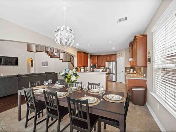 Looking for a spacious home to stay with friends or family? This is the perfect home for you! Our beautiful 5 bedroom, 3.5 bathroom home features high ceilings in the living room, a large kitchen, dining area, a great size game room, and an amazing back patio space with BBQ! Home is pet friendly w/ fee.