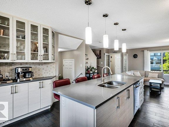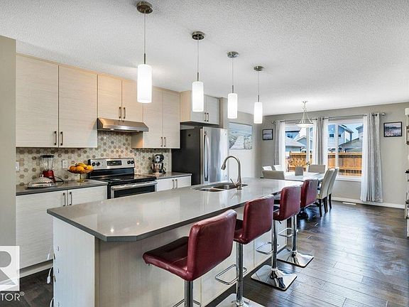 AFFORDABLE DETACHED home in desirable SW Edmonton! Stylish Open-Concept Layout! This beautifully designed 3-bedroom, 2.5 bath home offers a modern living space with a stunning open concept main floor featuring a glass-enclosed foyer, oversized QUARTZ kitchen island, ceiling-height cabinetry, additional full wall of cabinets perfect for coffee bar and updated stainless appliances, this Brookfield built home is designed for both functionality and style, modern linear fireplace is the centre point of the cozy living room, dining area a good size, 1/2 bath and laundry room complete the main level. Upstairs, the generously sized primary bedroom includes a walk-in closet for added convenience and full bath, additonal 2 bedrooms share a 4 piece bath, lower level unspoiled and ready for your development. Backyard is fully fenced and landscaped with deck, full double concrete parking pad and additional space to park toys put a shed etc. This is NOT a zero lot line property. Wonderful location shows 10/10!