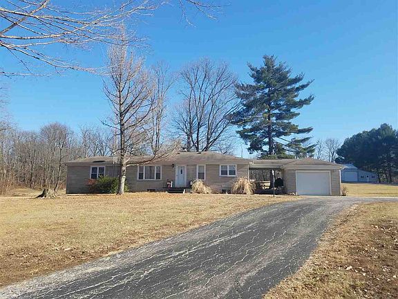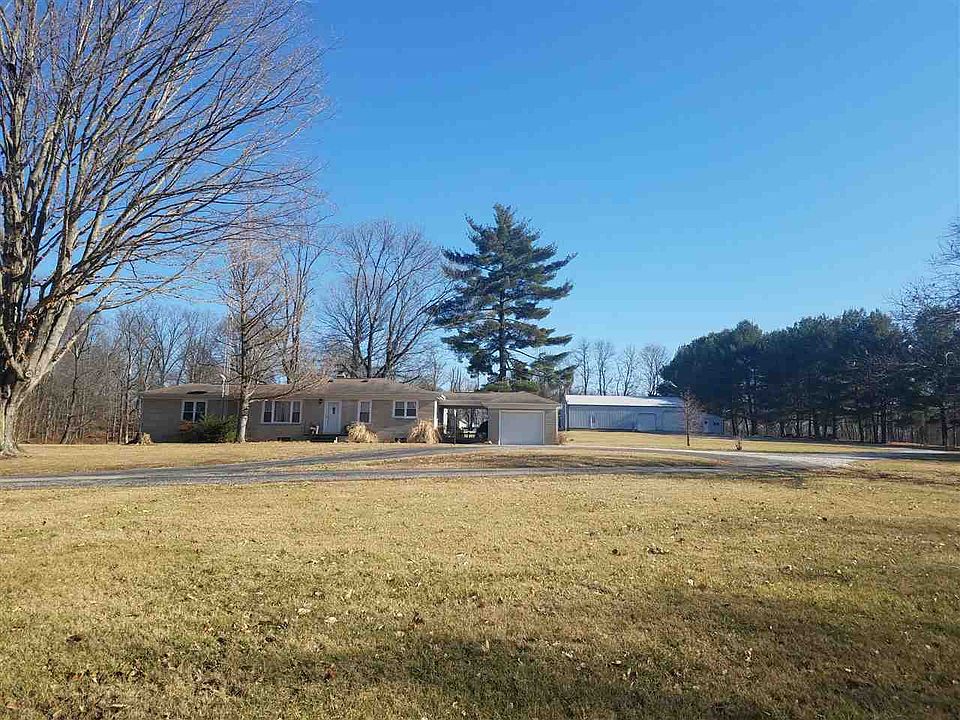 Just what you've been waiting for! Bedford stone ranch home with 3 bedrooms, 1 bath, unfinished basement, breezeway and 1 car garage on 6.7 acres south of Washington in Veale School Dist with a huge pole building and nice private pond! Don't miss out!