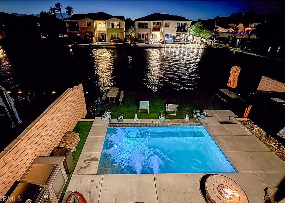 The backyard is an entertainer’s dream with a sparkling pool, spa, and direct lake access, creating a serene retreat with breathtaking views. Designed for comfort and style, this home offers open living spaces, abundant natural light, and modern finishes throughout.