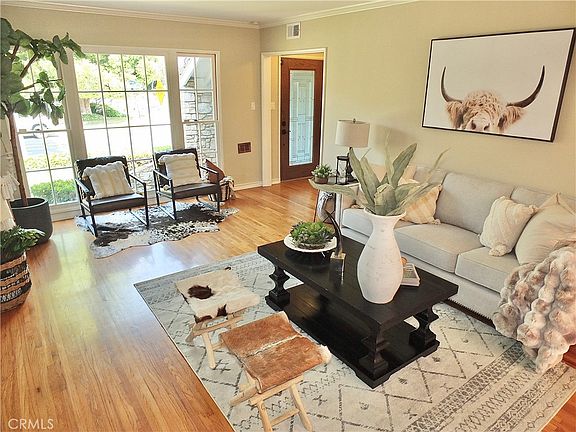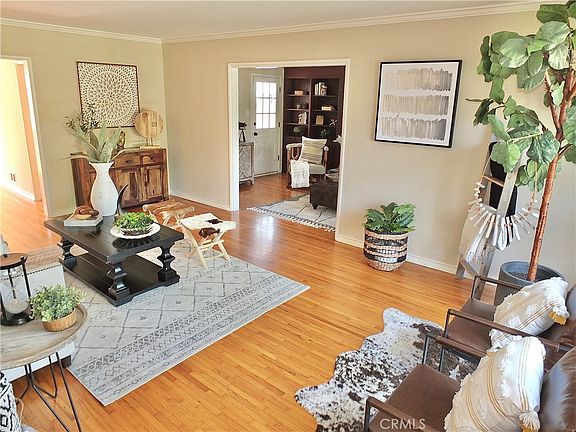 Your "California Dreaming" comes True! Make sure you watch the Virtual Tour! Step into the home that you have been waiting for. Located in one of the most desired areas to live, this Bixby Knolls treasure, is the home that dreams are made of. As you walk through the beautifully designed front door, you notice the details and quality craftmanship of this custom built home. The wonderful original hardwood floors, floor to ceiling front windows, spacious and open floor plan, with views and French doors leading to your own private backyard oasis retreat. Life does not get any better than this. Discover the light filled interior, a big & beautiful gathering place, classic wood and brick fireplace, with gas starter, the perfect spot to spend time with family and friends. Sun filled kitchen with eating area, beautiful stone countertops, plenty of storage and windows looking out to your park-like backyard and beautiful brick patio, the perfect space to unwind. The two spacious downstairs bedrooms, located off their own private wing, with detailed crown & baseboard moldings, beautiful custom windows with a centralized bath with walk-in shower and separate soaking tub. Your inside laundry is conveniently tucked away but easy accessed off hallway with newer stackable washer/dryer. Upstairs is your private primary bedroom, offers a tranquil retreat with additional walk-in storage closet and private bath, with double vanity and perfect privacy. Additional features of this home include a 2 car garage, with additional parking space on apron, designer block wall fencing, wired home security system, all exterior Baldwin locks keyed alike, backyard vegetable & herb garden and so much more that you must see for yourself! Be prepared to be the envy of all your friends & family that will not want to leave!