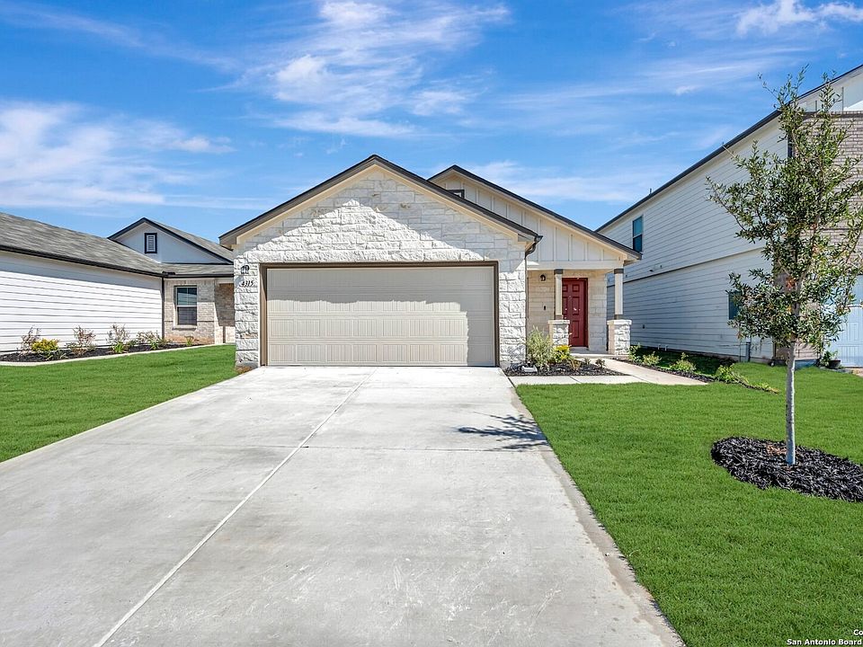 ***ESTIMATED COMPLETION DATE OCTOBER 2025*** Discover this beautiful new construction home at 4315 Carlotta Drive New Braunfels, TX, built by M/I Homes. This 1,556 square foot home offers thoughtful design elements and comfortable living spaces. This charming home features the following: 3 bedrooms, including an owner's bedroom located on the first floor 2 bathrooms with quality fixtures Open-concept living space perfect for entertaining and everyday living Single-story layout for convenient accessibility New construction with modern design elements This home combines style and functionality in every detail. The open-concept design creates a natural flow between the kitchen, dining, and living areas, making it ideal for both everyday life and entertaining guests. The owner's bedroom, conveniently located on the main level, offers privacy and accessibility. The en-suite bathroom provides a relaxing retreat after a long day. Two additional bedrooms provide comfortable spaces for family members or guests. The kitchen features well-designed cabinetry and workspace, perfect for culinary creativity while maintaining connection with the living areas. The home's thoughtful layout maximizes the 1,556 square feet to create a sense of spaciousness and comfort. As a new construction home, you'll enjoy the benefits of contemporary building standards, energy efficiency, and the opportunity to be the first owner of this well-crafted residence. The home's quality design reflects attention to detail throughout, from the attractive exterior to the carefully planned interior spaces. Every element has been considered to create a comfortable, functional living environment.