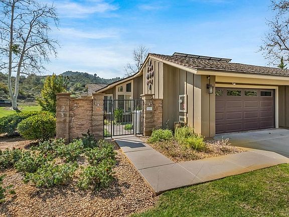 SHOWS LIKE A MODEL HOME! This 2 bedroom, 2 bathroom home is located in the desirable Pala Mesa Fairway Villas. From the moment you walk through your private gated entrance you will appreciate the pride of ownership. Inside you will find a cozy fireplace and vaulted ceilings which gives a spacious feel throughout the home. The kitchen is light and bright in design offering a beautiful picture window view, an electric range, abundant cabinet space, pull out drawers, pantry and breakfast nook. There is a spacious living room with an adjoining dining area, a sliding door that leads to the backyard and covered patio, great for entertaining and outdoor dining. Inside laundry closet with Washer, Dryer and sump pump. The Primary Bedroom is large and has 2 spacious closets and Plantation shutters. The ensuite has a beautiful walk in shower and Alderwood Cabinetry. The home has central heat and air conditioning, dual pane windows and glass sliding door. You’ll appreciate the two car attached garage and the beautiful walkway with a covered porch entry. Located in the Bonsall School District, per district map. Upgrades include the following; air conditioning, Beautiful Front Door, Alderwood Cabinetry in kitchen and master bathroom, Solar (owned), All windows and patio doors are Milgard Double Thermo Pane, Tankless Unit, patio cover is wood, Block Fencing and landscaping has all been professionally redone with drought tolerant plants, professional irrigation and exterior electrical. Easy access to freeways and close proximity to the Pala Mesa Golf Course & Resort, Restaurants, and Shopping. The community has walking trails, open green space, 2 pools, 3 spas, 3 BBQ's and bathrooms. You will love coming home and living in this peaceful setting.