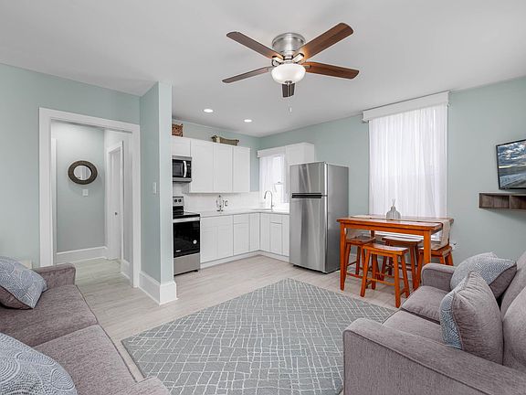 Welcome to 4315 Landis, Unit 1E, a corner end unit offering 2 bedrooms and 1 full bathroom, located beach block in Sea Isle City. This beautiful condo recently underwent a complete renovation and is being offered fully furnished and ready for immediate occupancy. In 2022 renovations began with all new flooring, all new kitchen with stainless steel appliances, tile and fixtures, all new bathroom with tile and fixtures, new flooring, new roof in 2022 and new fiberglass decks were completed in 2021. Entering the front door from the covered front deck you are greeted by the living room and eat in kitchen. There is a bedroom to the right behind the kitchen and a bedroom to the left with access to the rear landing and back yard. The shared full bathroom is centrally located. There is designated off street parking for one car. 4315 Landis is part of a 6 unit condo association, one commercial unit with 5 condos. Commercial unit has frontage on Landis, condos are facing 44th with 2 units on the 1st floor, 2 units on the 2nd floor and 1 unit on the 3rd. Property is easy to show and ready for your enjoyment this summer!