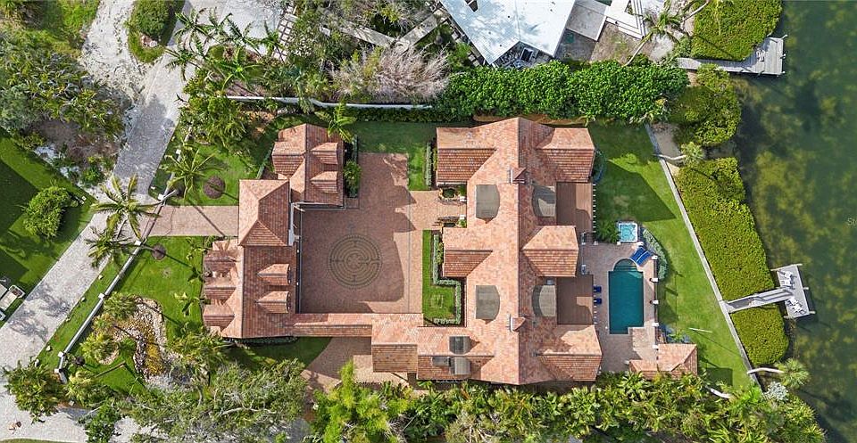 Private Island, Gated Home, Private access to deeded beach! Experience the epitome of exclusivity with unheard of waterfront views, unmatched privacy, and breathtaking, expensive vistas from your own private island retreat. Tucked away on a private island in Siesta Key’s South Cocoanut Bayou, this Tuscan-inspired estate feels like it’s been plucked from the pages of a storybook. The estate at 4315 Mangrove Place features a Tuscan-inspired central courtyard with over 4000 sq ft designed as the heart of the home. It is a grand, open-air courtyard enclosed by both the main residence and the guest villa, connected via an elegant, covered breezeway. The main residence offers soaring ceilings, intricate millwork, and expansive living spaces ideal for entertaining or quiet coastal living. A gourmet chef’s kitchen, formal dining room, library, owner ensuite located on the main level with his & hers walking closets and bathrooms, and custom home theater create a balanced blend of function and indulgence, Elevator in main residence & private elevator in guest house. Connected by a covered breezeway, the guest villa features its own living quarters, private elevator, one bedroom, full bathroom, living room and full kitchen—perfect for multigenerational living or extended guests. With six bedrooms, nine baths, a three-car garage, and an ambiance that feels like a timeless escape, this estate is more than a home—it's a legacy, a retreat, a living Castle fairytale. Outdoors, a resort-style pool and spa, and lush tropical landscaping create a serene oasis, while a private deep-water dock provides direct access to the Intracoastal and Gulf with no fixed bridges. Eligible to membership to private beach.