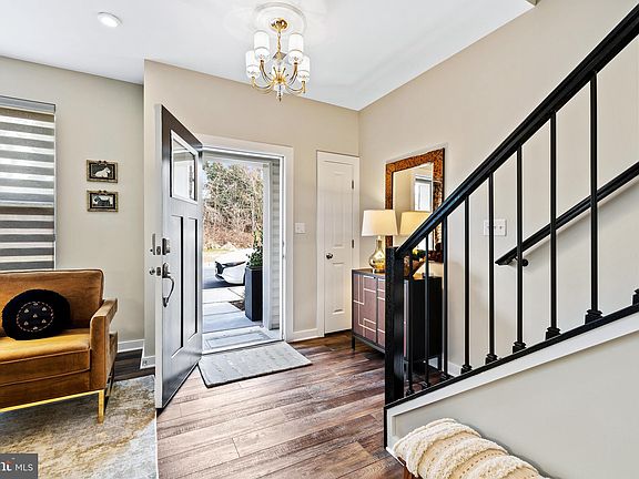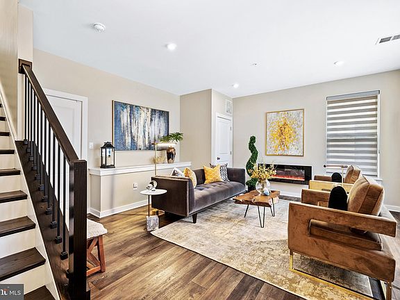 This 19 ' wide STUNNING townhouse with a private 2-car garage is located in one of Baltimore's newest communities. This is a much coveted end unit with 5 extra windows on the side. It was built in 2019. The community of Roland Heights is within Medfield and is walking distance to the avenue in Hampden, the Union Collective, Woodberry, and Roland Park. The first floor has a bonus room (perfect for a home office, family room, or workout area), as well as a rough-in for possible fourth full bathroom. The next level up has a dazzling open floor plan which boasts a modern kitchen with a 7 ft long quartz island, stainless steel appliances, and expresso cabinets. The floors are luxury vinyl plank for easy cleanup and durability. There's a pantry, half bathroom, and a 6 x 18 ft rear deck perfect for your morning coffee or evening cocktails. The next floor has the 3 bedrooms and 2 full baths. Who doesn't like a second level washer and dryer near the bedrooms? The primary bedroom has an ensuite bathroom, featuring a vanity with quartz counter tops, a large mirror, and shower. ALL custom blinds are included! Seller has painted all of the interior, added gorgeous additional lighting, and ceiling fans. The seller upgraded the 2nd set of steps with wood instead of carpet and installed luxury plank vinyl on the bedroom level. Then there's a 4th level loft which leads to a terrace overlooking the woods. Townhouse is zoned for Medfield Elementary (just 2 blocks away), Baltimore Polytechnic Institute and Western High School are within 1 mile. Nearby is a 10 acre park with baseball diamonds, a basketball court, and playgrounds for play. Foodie Alert! Within 1 mile are at least 25 delicious options for restaurants. If you want to head downtown for the nightlife and cultural activities, it's just an 8-10 minute drive. The HOA fee is $60 a month. There's a deferred water bill of $400 a year. There's a one-time $360 capital contribution fee. The fountain at the front entrance conveys.