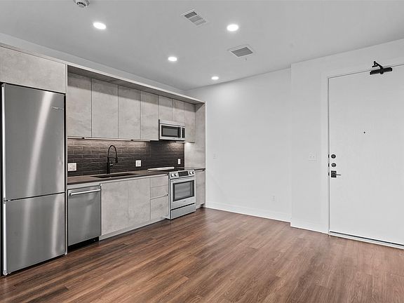 This 4th-floor, 1-bedroom, brand-new residence offers style, energy, and skyline views. Wide-plank hardwood floors run throughout, and the sleek kitchen features quartz countertops, modern cabinetry, and stainless steel appliances. Black-framed windows bring in natural light and open to a private balcony with incredible views of Downtown Austin. The spacious bedroom suite includes a walk-in closet with custom built-ins and a spa-inspired bath with dual vanity, quartz counters, and a seamless glass walk-in shower. Congress Lofts residents enjoy a lounge, game room, and resort-style pool deck with grilling stations. Step outside and you're in the heart of the St. Elmo District, Austin's emerging arts neighborhood with favorites like Spokesman Coffee, St. Elmo Brewing, Still Austin, The Austin Winery, and more. Just 5 minutes to South Congress and 10 minutes to Downtown, this location is perfectly connected to the best of Austin. 1 reserved parking space included.