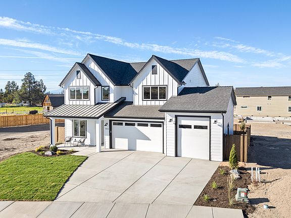 GRAND OPENING OPEN HOUSE! Welcome to Starview, where modern design meets functional living. The main level features an open-concept great room with cozy gas fireplace, chef's kitchen with spacious island, quartz counters, stainless appliances, and versatile bedroom or office. Step out to the covered deck overlooking the fully landscaped and fenced backyard-perfect for entertaining or relaxing. The three-car garage with RV bay adds exceptional storage and flexibility. Upstairs, the luxurious primary suite offers dual vanities, a tiled shower, soaking tub, and two walk-in closets. Two additional bedrooms, full bath with dual vanities, large bonus room/5th bedroom with closet, and convenient utility room complete the upper level. Ideally located near Hwy 97, with easy access to Bend, and Redmond's dining, shopping, schools and parks, this home blends comfort, style, and convenience for today's lifestyle.