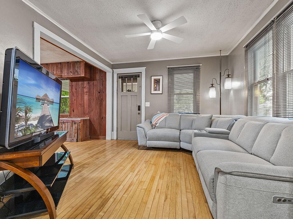 Backyard bbqsSpacious bedroomLarge kitchenFormal diningThree season back porchBonus space for hobbies
