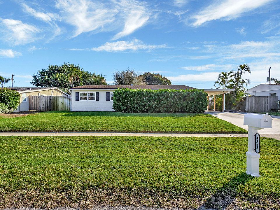 Welcome to this beautifully remodeled 3-bedroom, 2-bath CBS home located at 4316 Arbor Way in Palm Beach Gardens; offered furnished or unfurnished. Inside you'll find impact windows/sliders/doors, Ecobee Smart AC thermostat and wood-look tile throughout. The kitchen boasts quartz countertops, a stylish tile backsplash and SS Appliances, including a sleek oven hood. The Primary Suite features an ensuite bathroom and access to the covered porch. The guest bathroom was recently remodeled in 2022 with a combo tub/shower. Additional upgrades include a flat roof resealed in 2024, newer rain gutters, newer fence and recently epoxy lined pipes with a 50+ year life expectancy. The fully fenced spacious backyard features a covered porch, galvanized steel fire ring, and a shed.