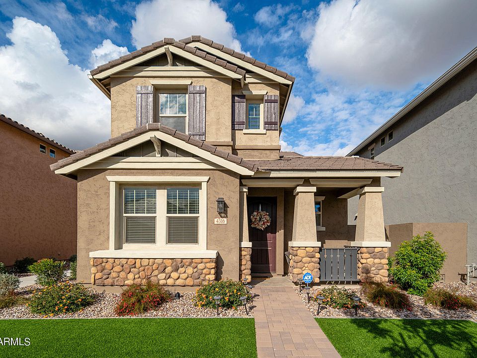 Cooley Stations most popular floor plan is right at your fingertips. This 4 bed 3 bath 2037 sq ft home has 1 bed and full bath down stairs with an open concept flow between the family room, kitchen and dining room spaces. 9 ft atrium sliding doors with electric shade covers outlooking the backyard uncovered patio area. Kitchen provides a gas range with double oven stove with plenty of counter and cabinet space to match. Upstairs your greeted by a large loft perfect as an office or kids area. Bedrooms 3 and 4 are of equal size with one providing a walk in closet. Full single sink bath plus shower/tub combo. Spacious primary bedroom boasts large bathroom and walk in closet. Air scrubber filtration system throughout gives this home everything needed for a new family going into the new year!