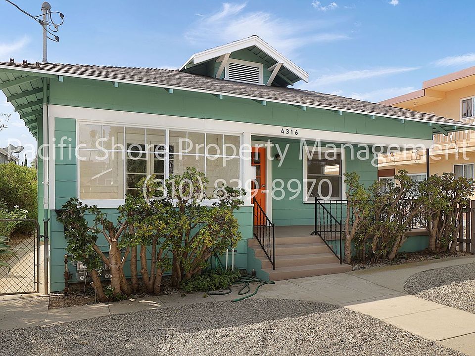 This super cute home is nestled south of the Boulevard just a few blocks from downtown Los Feliz. The house is situated on a large lot with one other unit. The front yard has drought tolerant landscaping with two large graveled areas for entertaining, and a spacious covered porch. Inside the living room sports wood flooring and is situated around a decorative fireplace. The living room flows into a dining room with a conjoining built out porch area perfect for a small office. Off of the dining room you will find the very spacious and retro kitchen that includes a fridge and stove. The two bedrooms are found to the back of the house and each have ample closet space. Each of these bedrooms share a hallway bath. The best surprise is the bonus room, which can be easily converted to a 3rd sleeping space, office or game room! Drive way parking available. Laundry in unit and central a/c. Just minutes to Hollywood, Griffith Park and Glendale!