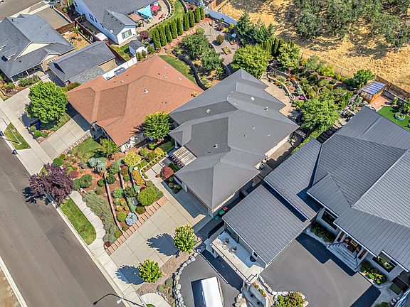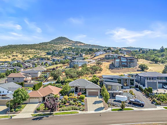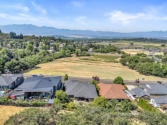 Stunning, single-level Vista Pointe 3BD/2.5BA + office in the East Medford foothills of Roxy Ann! Sweeping valley views here to stay, as home faces Oregon Hills Park greenspace to the SW. Thoughtfully designed indoor & outdoor spaces offer tasteful custom finishes, privacy, and a tranquility only felt in person. Enjoy morning and evening meals w/ever-changing sunrise & sunset backdrops from the elevated front patio or the cozy dining room. Chef's island kitchen w/Wolf 5-burner range, Electrolux oven, granite counters, extensive cabinetry & bar pass-through. Central, airy living room features 10'5'' ceilings, corner gas fireplace w/floor-to-ceiling stone surround, open views to backyard & access to covered patio. Split floor plan offers separation for the two primary suites! Larger suite w/travertine tile shower, heated floors, dual vanity & walk-in closet sized for two. Office & third bedroom have great natural light. Yards masterfully landscaped for aesthetic beauty at every glance!