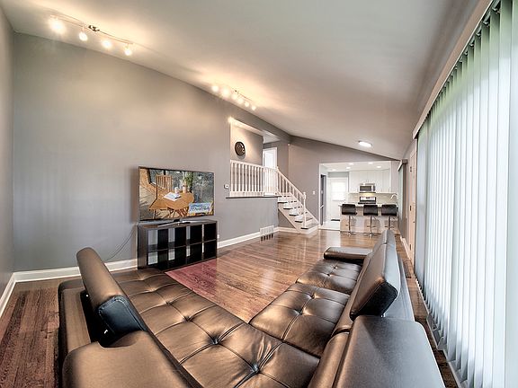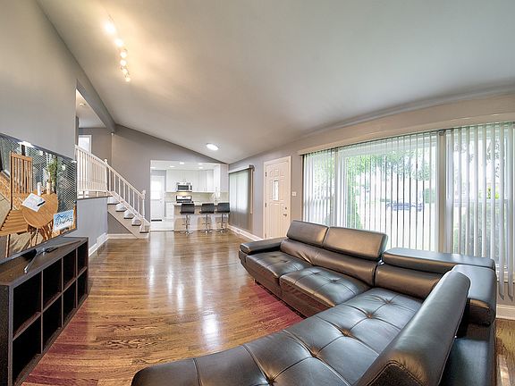 This beautifully upgraded home features an open floor plan with real oak hardwood floors, a kitchen equipped with granite countertops, stainless steel appliances, and a breakfast bar. Tall ceilings enhance the spacious feel, while the finished basement provides versatile living space. The newly updateed bathroom includes a marble vanity top, adding a touch of luxury. Outside, enjoy a large backyard and a 2.5 car garage. Located just minutes from the 294 Expressway, this home combines convenience with comfort.