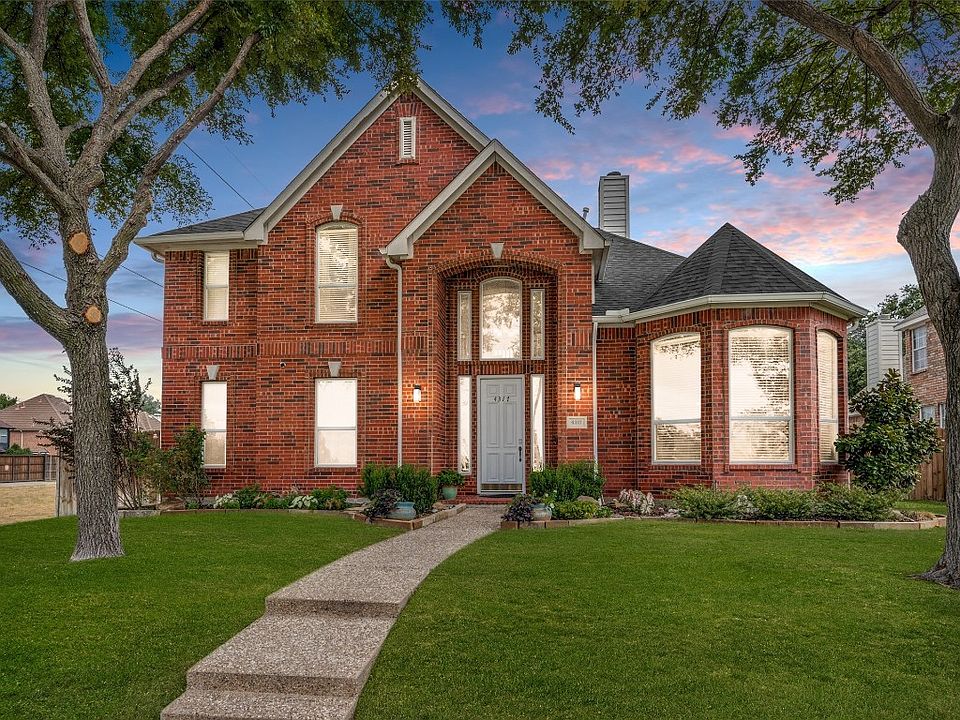 This spacious 5-bed 3.5 bath home directly across from Carpenter Park features a luxurious interior complete with grand foyer, soaring ceilings, 2 living areas, 2 dining areas, fireplace, & abundance of natural light. Sparkling salt water pool with tanning ledge & waterfall, putting green, cedar covered patio, & beautiful landscape create a stunning backyard oasis. Gourmet kitchen features 42 in cabinets, large island with electric cooktop, ss appliances, workstation, breakfast nook, & granite countertops. Primary bed is a true retreat with ensuite bath featuring dual sinks, jetted tub, & massive walk in closet equipped with ELFA shelving. Gameroom, 2 full baths, & 4 generous sized bedrooms up. 5th bedroom could be office or flex room. New woodlike floors on stairs, gameroom, & main areas down installed in 2019. New windows, roof, gutters, water heater & laundry room remodel in 2019. New paint 2023. Corner lot next to greenbelt. Easy access to Preston Ridge Trail & Plano Rec center!