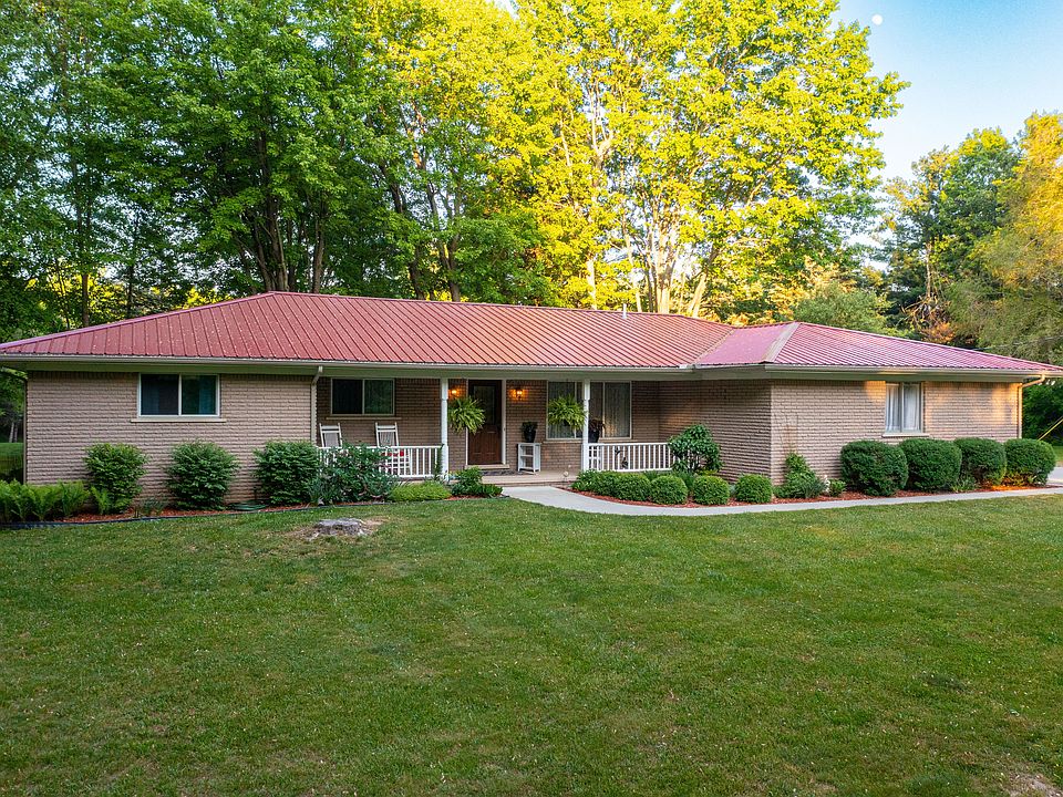 Welcome Home! You might never want to leave this beautifully updated brick, ranch home that sits on 10 amazing wooded acres. A nature lover's paradise for sure. The first floor of this 3 bedroom/3 ½ bath home has been updated with all the high end finishes and attention to detail. Your living room, dining room, and kitchen have new oak flooring, crown molding, baseboards and solid core doors. The 3 bedrooms have blush new carpeting and the main bdrm was 2 rooms professionally converted to one with 2 closets and a beautiful bath with marble floor, dbl sinks, granite, a custom vanity and tile shower. If you love to entertain/cook the kitchen offers custom soft close cabinets, granite counters, stainless appliances and tile backsplash that is located right off the new 12’ x 36’ deck. There is plenty of storage throughout and the laundry is located on the 1st floor. The basement offers so much more living space with more storage, a workshop, full bath, bar, family room space and a second kitchen for entertaining. Outside has been exceptionally landscaped and offers a new 24’ x 36’ pole barn with workbenches, electric, wood burner for heat and 2 doors for convenience. There are groomed atv/walking trails to the back of the property and small pond. This home is beautiful, move in ready and waiting for you to call it HOME. (Full list of updates available)