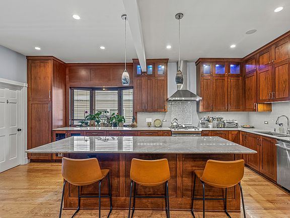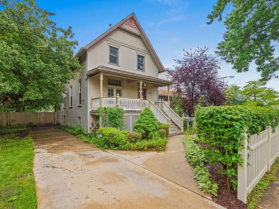 Updated and charming Victorian home in Old Irving Park on a double lot of 50x150'! There is a long concrete driveway to park several cars, and a garage can be built (there used to be one in the back yard). The main level has a wide open floorplan with a living room, dining area, and a family room. The large and stylish kitchen has loads of cabinet and counter space, high quality wood cabinets, granite counters, a huge kitchen island with seating, tile backsplash and glass front cabinets. The family room also features a wood built-in entertainment center with shelves and cabinets to match the kitchen, and the rear entry has a built-in bench and custom space for coats and backpacks! The powder room and the 4th bedroom are also on this level. The back door by the family room and kitchen lead out to an oversized covered rear deck that overlooks the giant fenced yard! The 2nd floor has 3 bedrooms and a full bathroom. The primary bedroom has vaulted ceilings, double closets, and a wardrobe (included). The finished lower level has a large recreation room with a custom dry bar (included), a large laundry room with side by side washer/dryer and a large counter and cabinets, and a 5th bedroom with en-suite full bathroom and a door to the rear of the home (making this a great option for a roommate, in-law, or au pair living)! Lower level and main level have separate sound systems with installed speakers. Many recent updates include new furnace (2025), new roof, new windows, and drain tile with sump pump! This home is within Belding Elementary school boundaries and the school is only 3 blocks away. Great access to the Blue Line, Metra and 90/94 for easy commuting to the city, O'Hare or suburbs! Many great dining options nearby including Old Irving Brewery, Eris Cider and Brewery, CTA Tacos, Breakfast House, Starbucks, Backlot Coffee...and even more at nearby 6 Corners! Many parks close by including Kolmar Playlot, Mayfair Park, Belding park, and Independence Park (with Farmer's Market).