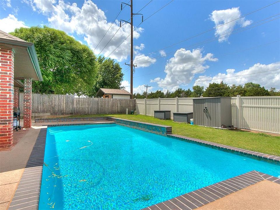 Pool! Pool! Pool! How about a nice refreshing dip in your own pool every day? Nice home in Deer Creek Schools, too! 4 true beds with a study! 3-car garage with storm shelter! Open floor plan is great for entertaining! Gorgeous kitchen with granite, tiled backsplash, island, stainless appliances, painted cabinets, nice pantry, and large dining space. Corner fireplace in living and beautiful view of pool, too!. Spacious primary with double vanities, soaker tub, shower and walk-in closet. Large office with pocket doors. - could be flex space too! So don't miss out on that nice cool dip in the pool and come see soon! For sale or lease.