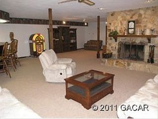 Enjoy country-style living minutes from Gainesville in this beautiful Tudor-style home. With 4 beds/3 baths and 4,028 SqFt of space, there is plenty of room for your family...and your horses! A stone, double-sided fireplace, laminate wood floors, and vaulted ceilings welcome you into the open-concept living and dining room. Large windows and glass doors throughout the home provide natural light and picturesque views of the green, 5.75-acre lot, secluded by a variety of trees. The kitchen features stainless steel appliances, an induction countertop stove, and a plethora of cabinet space. Retreat to the massive master suite, complete with granite counters, recessed lighting, dual vanity, and walk-in shower, or step onto the balcony to watch the sunset with the chirping birds and frolicking deer. Meanwhile, the 3 large guest bedrooms offer solitude and comfort for your kids and guests. Downstairs, the basement boasts an elegant wet bar, Italian slate pool table, and in-law suite/office with separate entrance. Unwind in the hot tub on the enclosed back porch, or head outside for a second hot tub and swimming pool! A cedar-walled outbuilding and 260 SqFt attic offer extra storage, while a horse corral awaits its next occupants.