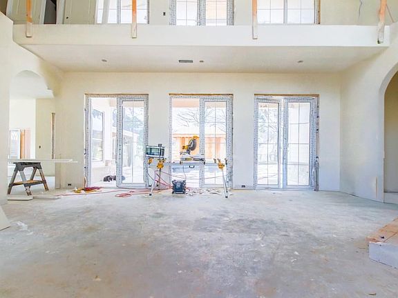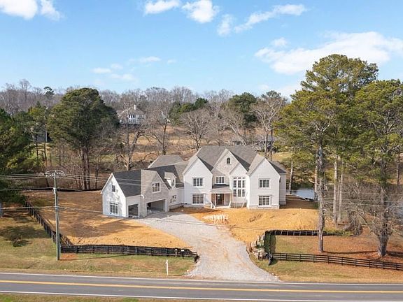 Stunning stone & brick new construction perfectly situated on 2 acres custom built by Savage Family Homes! The grand entry welcomes you with soaring 25-foot ceilings, a dramatic window-wall staircase and elegant arched doorways throughout the main level. Engineered wide-plank white oak floors, fluted white oak custom doors, and exposed beams in the vaulted family room create warmth and architectural interest. The family room is anchored by a stunning Indiana limestone fireplace. The chef's kitchen is a true showpiece with custom inset white oak cabinetry, marble countertops, herringbone wood-paneled ceiling and a center island with garden sink. A full suite of Sub-Zero and Wolf appliances is complemented by a fully equipped scullery featuring a steam oven, standard oven, warming drawer, second dishwasher and extensive storage. Entertain effortlessly in your formal dining room with wet bar and glass-enclosed wine display set against a striking stone feature wall. The private owner's suite on main is a serene retreat with a separate sitting area, private covered porch with gas fireplace and tranquil water views. The spa-inspired bath features his-and-her vanities, an arched frameless glass shower with dual shower heads, designer tile arched niches and a massive custom closet complete with ample hanging space, shoe display, handbag display and center island. This Outdoor living area rivals a luxury resort with a covered pool cabana featuring tongue-and-groove ceilings, Indiana limestone fireplace, pool bath, grill station with griddle, under-counter refrigerator and full wet bar. The 17x34 saltwater pebble pool with raised spa is surrounded by turf-inlay decking and a custom movie pavilion, creating the ultimate entertaining environment. The secondary level offers four spacious en-suite bedrooms, including one with a Juliette balcony overlooking the water, a dedicated study and a large unfinished space ready to be finished as a media room, loft, or home office. A rare opportunity to own a masterfully designed property offering privacy, luxury, and breathtaking views.