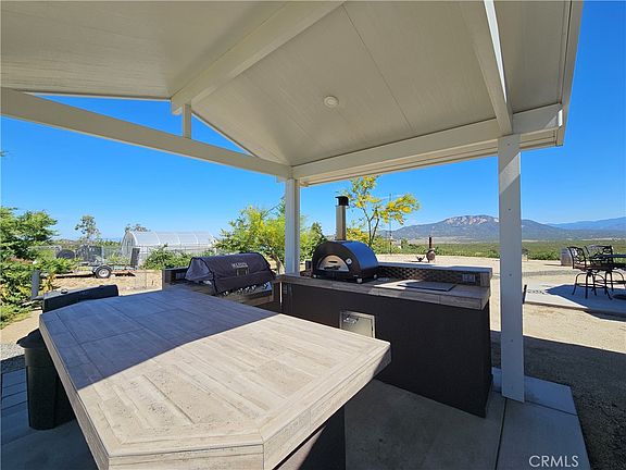 Rare & Stunning Aguanga Ranch Property with Custom Home and Orchard – Welcome to your private retreat! Nestled in the scenic hills of Aguanga, this extraordinary 4.67-acre ranch offers breathtaking mountain views, unmatched privacy, and a thoughtfully designed custom home brimming with charm and functionality. Built to harmonize with its surroundings, the residence takes full advantage of direction of build for summer/winter heat management, wind direction, and expansive vistas. This Custom Home is meticulously designed offering open-concept living, oversized sliding glass doors and windows that bring the outdoors in. Two spacious bedrooms each with walk-in closets, and an attached one-car garage adding an additional 480 sq ft enclosed space with office/workshop. Take your living space outside and enjoy the expansive 15x33 ft covered Alumawood patio—north-facing to stay cool in summer—perfect for relaxing and taking in the sweeping orchard and mountain views. Orchard & Ranch: This property features a beautifully planned maintenance manageable orchard with: Approx. 280 pistachio trees, 50 olive trees for oil + 12 olive trees for consumption, apple, plum, apricot, cherry, and pomegranate trees and blackberry bushes. Designed for high efficiency with organized, time-saving maintenance systems in place. Outbuildings & Equipment: 30x35 ft steel insulated workshop 6 multi-use sheds: one with AC-equipped home office, storage sheds, and generator shed. Two 8x20 ft steel cargo containers, Fully fenced greenhouse with roll-up sides (temperature control), and scenic BBQ/view pavilion for entertaining. This property comes with ALL of the tools and supplies to manage the property and orchards including a 35 HP Kubota diesel tractor with front and back implements, wood chipper, and all pistachio processing equipment.  High-producing well at 30 GPM + 5000-gallon storage tank, 700 ft V-ditch drainage system for optimal water runoff. Water softener, reverse osmosis system, washer/dryer, and refrigerator included. Expansion Potential: The adjoining 4.97-acre parcel is also available for purchase, fully fenced with panoramic views—offering nearly 10 acres of private ranch land.  Located at the end of a quiet cul-de-sac with no through traffic, this property provides unmatched peace and serenity. Whether you're looking to farm, relax, or create a sustainable lifestyle, this one-of-a-kind ranch is a rare opportunity. Don’t miss your chance to own this extraordinary property.