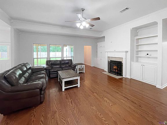 Charming 2005 Home in Prime Location Near St. Amant Schools Discover this beautifully maintained gem, just minutes away from St. Amant schools. Built in 2005, this home has received several minor cosmetic updates from the current owners, including fresh interior paint. The living room boasts wood flooring, built-in shelving, a gas fireplace, and stunning views of the backyard. The spacious master bedroom leads to the primary bathroom, featuring double walk-in closets, a new garden tub, dual vanities, and a separate shower. All bedrooms are generously sized and equipped with large closets. The functional laundry room includes cabinets above the washer and dryer for additional storage. Enjoy outdoor living with a wooden cover over the patio and a shed/building on a slab that matches the house's facade, perfect for extra storage or a workspace. The privacy-fenced backyard offers a peaceful retreat for relaxation or play. Residents will love the neighborhood amenities, including two beautiful lakes for recreational enjoyment. This home did not flood in 2016 and is located in flood zone X, providing extra peace of mind. Don't miss out on this wonderful home! Schedule a tour today and see all that it has to offer. Please note that measurements and acreage are not warranted by the Realtor.