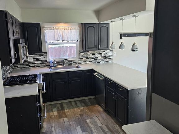 Large fenced backyardDining roomGreat room with fireplaceStainless steel appliancesStainless hardwareBreakfast areaHard surface flooring