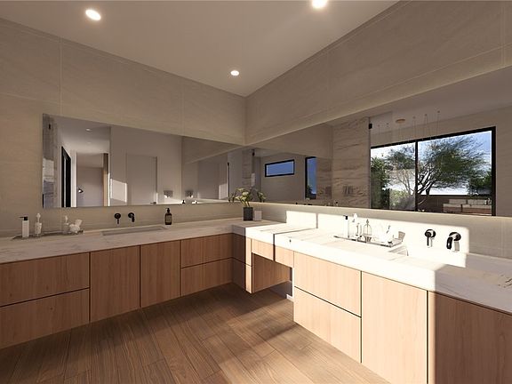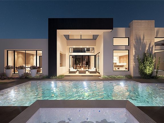 Located within The Estates at Lone Mountain, this turnkey, half-acre custom home is the final residence in this exclusive nine-lot community. This Spire plan includes options of the MultiGen suite & and the upstairs 5th bd, offering a gated 5 bd & 5 & a 1/2 bth. The exterior showcases a bold metal-clad roof paired w/ natural wood & limestone for a timeless appearance. Inside, a warm modern design emphasizes the use of organic materials. Marble countertops & accent walls, limestone fireplaces, & warm wood cabinetry and flooring create a cohesive palette that feels refined. Floor-to-ceiling windows fill the home w/ natural light & frame beautiful views of Lone Mountain. Additional features include an attached RV garage, heated pool & spa, fully landscaped lot, private entry courtyard, outdoor shower, minimal HOA restrictions, Control4 smart home technology, & an integrated sound and security system for a seamless blend of comfort & sophistication
