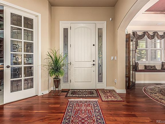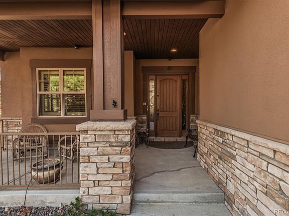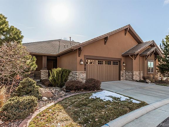 Prepare to be amazed! Check out this wonderful 3 bed, 4 bath residence now for sale in Castle Pines! A gorgeous facade w/stone accents, manicured landscape, 2 car garage w/built-in cabinets, and a welcoming front porch are just the beginning. Come inside to discover a spacious living area w/an impressive fireplace to keep you warm & cozy. Wood-look flooring, soft carpet in all the right places, plantation shutters, and custom palette throughout! You will also find a formal dining room, perfect for hosting a dinner party. The gourmet kitchen is comprised of wood cabinetry w/crown moulding, granite counters & backsplash, a pantry, pendant & recessed lighting, a two-tiered island w/a breakfast bar, and a breakfast nook. Don't forget about the cozy den w/French doors, ideal for an office! Continue downstairs and into the sizeable family room, showcasing a 2nd fireplace and wet bar. The grand primary suite features direct outdoor access, a walk-in closet, and a lavish ensuite w/dual sinks plus separate tub & shower. Also including a lovely backyard deck and covered patio, this home is a dream come true! Act now before it's gone!