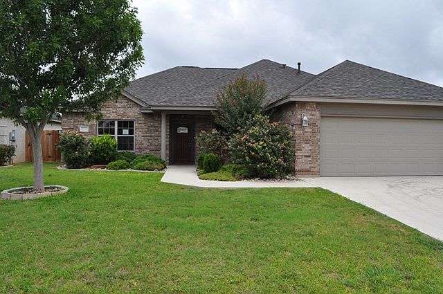 Tall ceilings and open floor plan with beautiful appointments throughout. Granite counters, dark cabinetry, neutral colors, Austin stone fireplace, 2 dining areas, split bedroom arrangement, with master bath featuring double vanity, two walk-in closets, separate tiled shower and Jacuzzi tub. Nicely landscaped, sprinkler system and spacious covered back patio. New roof in August 2017. Located in the quiet area of The Trails with friendly neighbors and well maintained homes and lawns
