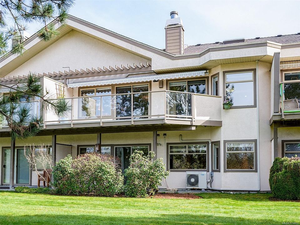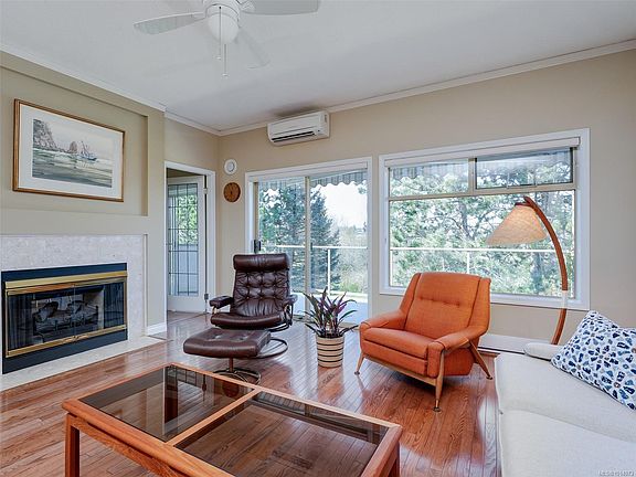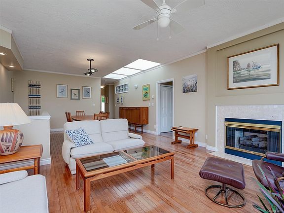 ***Seller open to offers!*** Lovely townhome in one of Victoria’s premiere townhome complexes – Foxborough Hills. **$40,000 just spent on new vinyl thermo windows and sliding patio doors!** The Primary bedroom is located on the spacious 1,511 sq. ft. main living level with another 934 sq. ft. finished area on the lower level. Very pleasant views over the nature sanctuary. The home shows well and offers: hardwood floors, open kitchen with adjoining family room, gas fireplace, skylights, heat pump with A/C, double garage, a private courtyard & large deck. Superb location: groceries, eateries, banking, coffee shops & much more all within walking distance. Plus, terrific walking trails right at your doorstep. The complex offers a clubhouse, indoor pool, jacuzzi, 2 guest suites & tennis courts. Cats & dogs are permitted. Easy to view by appointment. This is a rare find & you will hardly feel like you are downsizing.