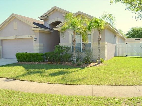 **PRICE REDUCED** Welcome to your beautifully landscaped corner lot home in Wesley Chapel, in the peaceful neighborhood of Brookfield Estates. This spacious 1-story home features 4 BR & 2 full baths. The foyer has elevated ceilings & tile entry, w/ niche to display your art. The alcove feeds the front BR, full bath w/ wide vanity & sink, tub/shwr combo, linen closet & 2 more BRs in the hall. An interior utility w/ extra storage connects the 2-car garage. The Kitchen has tile floors, a multitude of cabinets, incl. pull-out garbage, Corian solid surface countertops, refrig., range, microwave-hood, dishwasher, garbage disposal & pantry. The Casual Dining area is also tiled & both areas are open to the Great Room, w/ the Master Suite tucked nicely to the rear of the home. The Master BR has a dbl tray ceiling & lots of natural light. The En Suite Bathroom features dbl vanities w/ sinks, garden tub, separate shower, water closet, tile floors, & natural light. The 15x5 huge walk-in closet has extra storage space above shelving. The screened dbl sliding glass doors opens to a lanai. The 6'' premium vinyl fence gives you privacy to enjoy time in your backyard sanctuary. Convenient access to I-75, SR-54, Morris Bridge Rd., public transportation, library, 15 min from theaters, grocery stores, Wiregrass Mall and Tampa Outlets. Neighborhood has fenced park w/ playground & Wesley Chapel District Park is 6 miles away. All info contained herein deemed accurate, but to be verified by the purchaser.